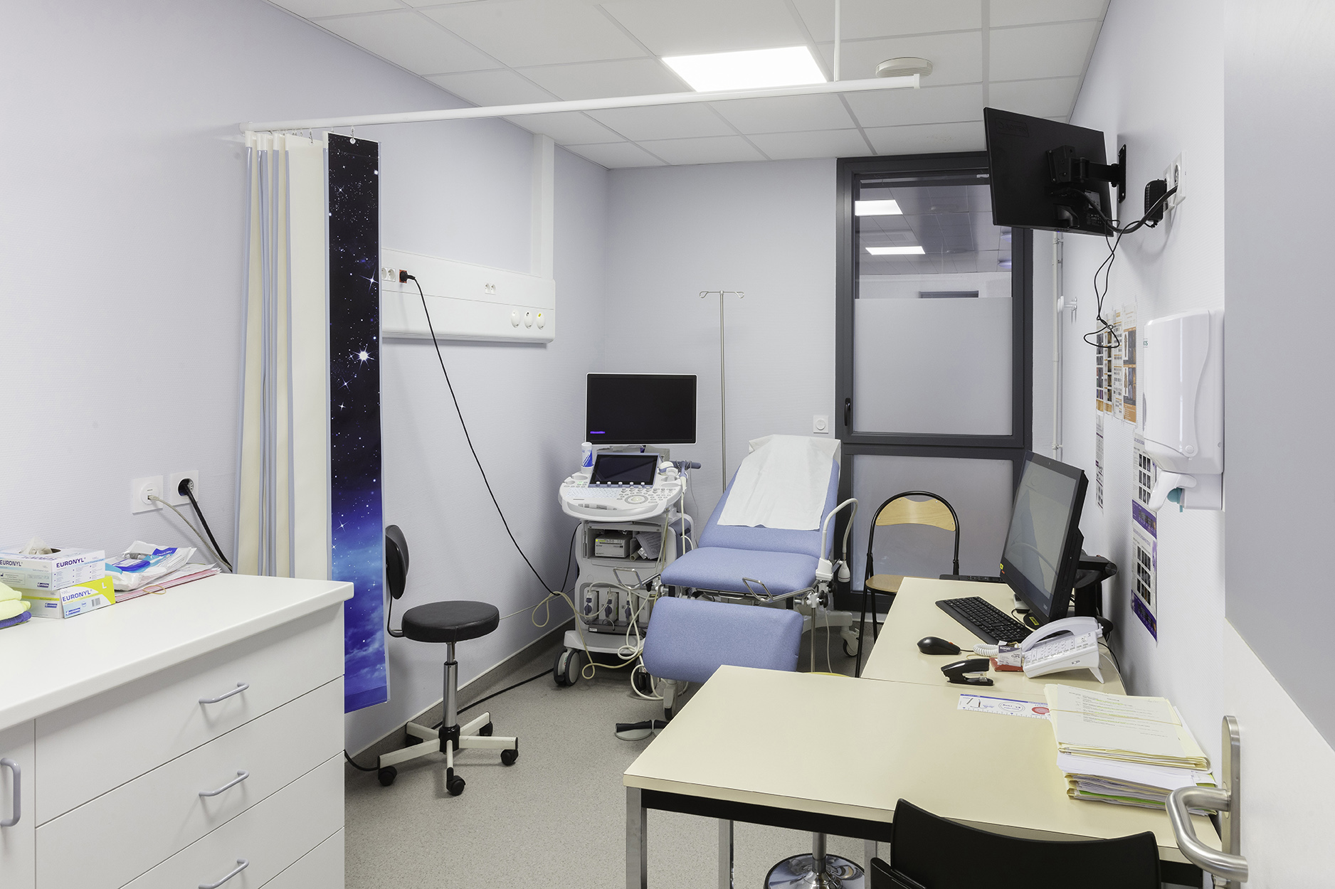 On the historically suburban Henri Mondor hospital site, the hospital is undergoing a transformation. The challenges of the project are to build strong links with the existing, both functionally and spatially, while creating a unitary and coherent whole. The project is therefore a continuation of what already exists and constitutes a unique whole, without breaking the level. At the heart of the project is the technical platform that brings together the operating room, endoscopy and the birth service.